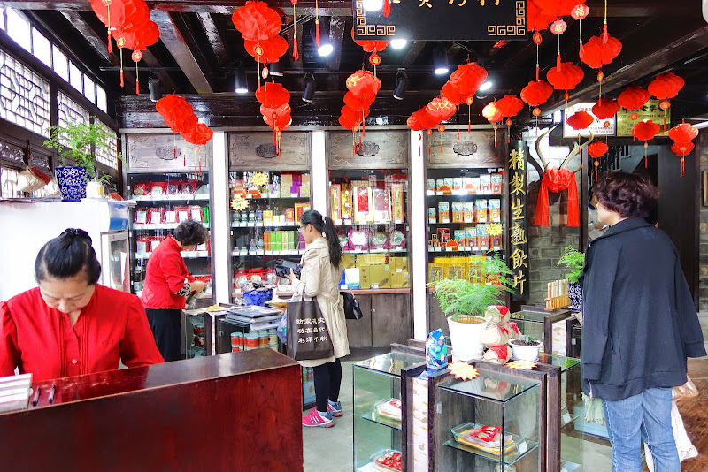 C'est un vieux bâtiment rescapé, en bois, couleur lie de vin, avec de belles décorations. Entre les gratte-ciel et le centre commercial, tout près de Huaniao Shichang, le marché aux fleurs.