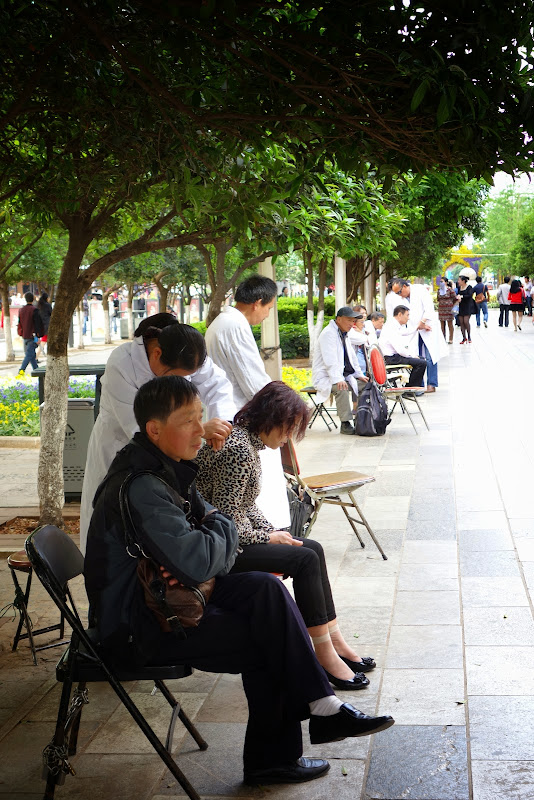 Il y a des masseurs aveugles alignés tout le long du chemin qui mène à la grande place. Ceux ci sont formés par des institutions spécialisées pour leur procurer un revenu minimum de subsistance.