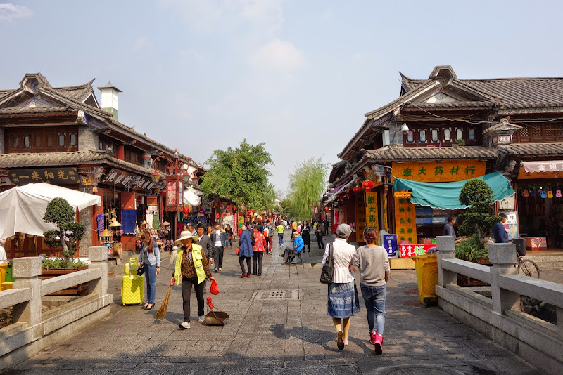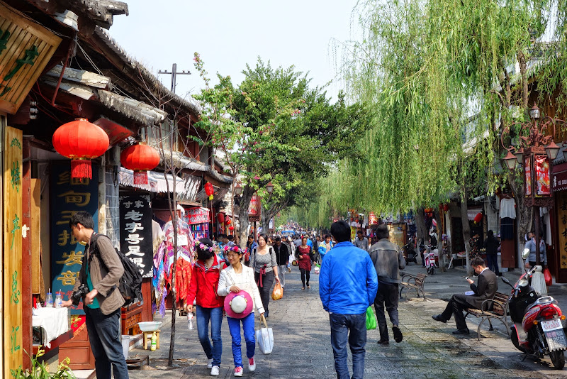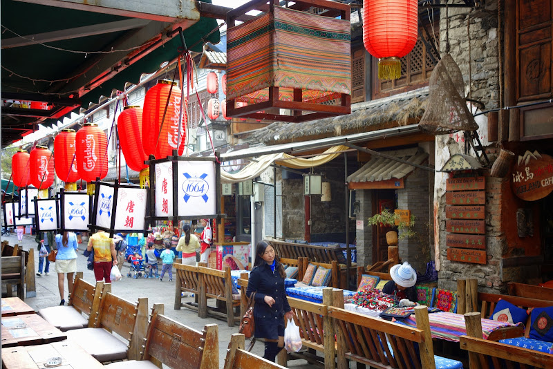 Des dizaines de groupes chinois encombrent les rues tous avec de gros appareils photos ...