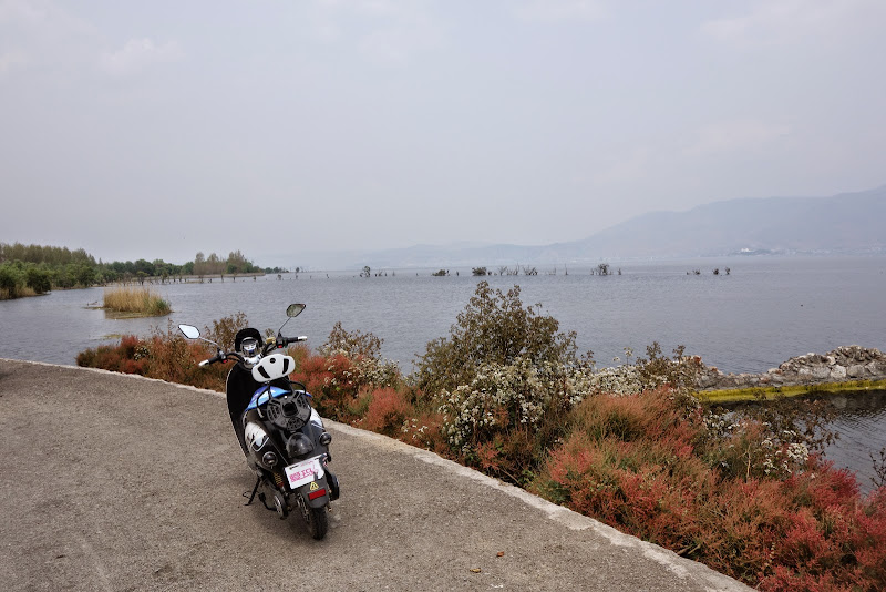 Aujourd'hui, je vais louer un scooter électrique (50 yuans) pour faire un tour du lac Erhai le long de la côte Ouest.