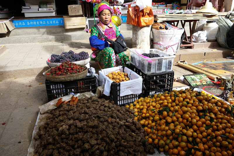 Les minorités ethniques de la région, comme les Bai de la vallée, traditionnellement vêtues ou encore les Yi de la montagne, femmes en rouge écarlate et turquoise se donnent rendez vous pour vendre leur marchandise.